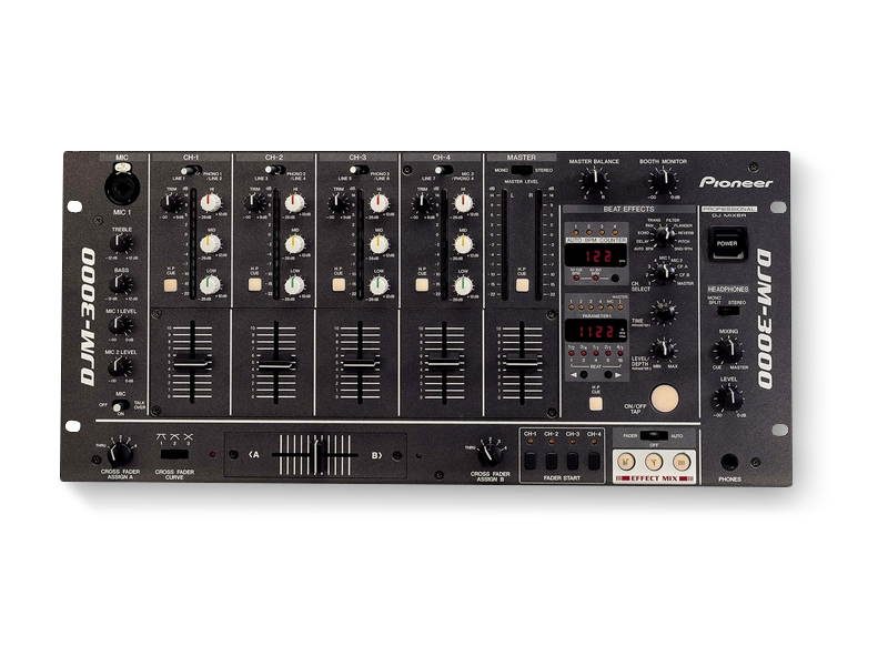 The DJM-3000 wide range of effects includes Delay, Echo, Auto Pan, Flanger, Pitch Shifter Reverb, Auto-Transform and Auto-Frequency Filter. All of which are auto BPM effectable.