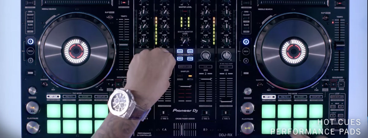 Low latency jog wheels with On Jog Display, multi-coloured Performance Pads and a four-channel mixer deliver highly responsive, tactile control of all rekordbox dj’s performance features. Or you can use the DDJ-RX as a stand-alone mixer.