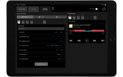 The DJM-A9 is compatible with Stagehand, the industry-first PRO DJ LINK remote management app for front of house teams. Using an iPad connected wirelessly to the mixer via a LAN router (available separately), an engineer can keep an eye on things such as level meters and the DJ’s use of the mixer’s controls, making it easier to maximize the sound system’s settings and run a smoother, more impactful show without needing to interrupt the DJ’s performance or even enter the booth. To download the Stagehand app, visit the App Store.