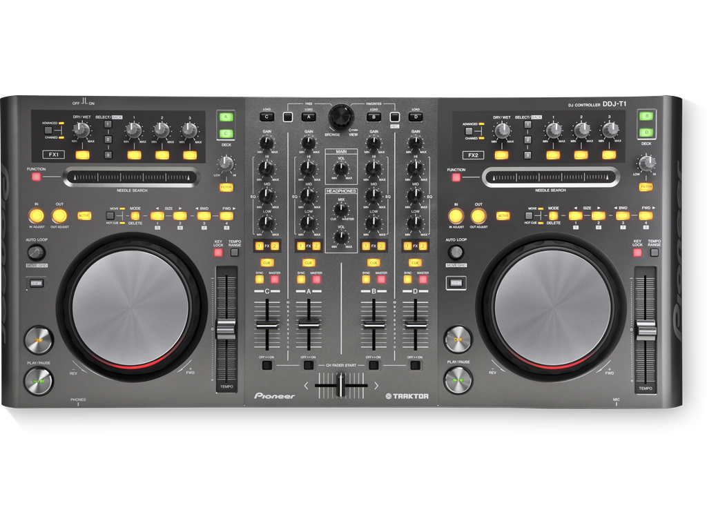 The DDJ-T1 offers the same operability and layout as our pro-DJ equipment, whilst enabling DJs to play music files from the computer via dedicated TRAKTOR DDJ-T1 edition software (which is included).