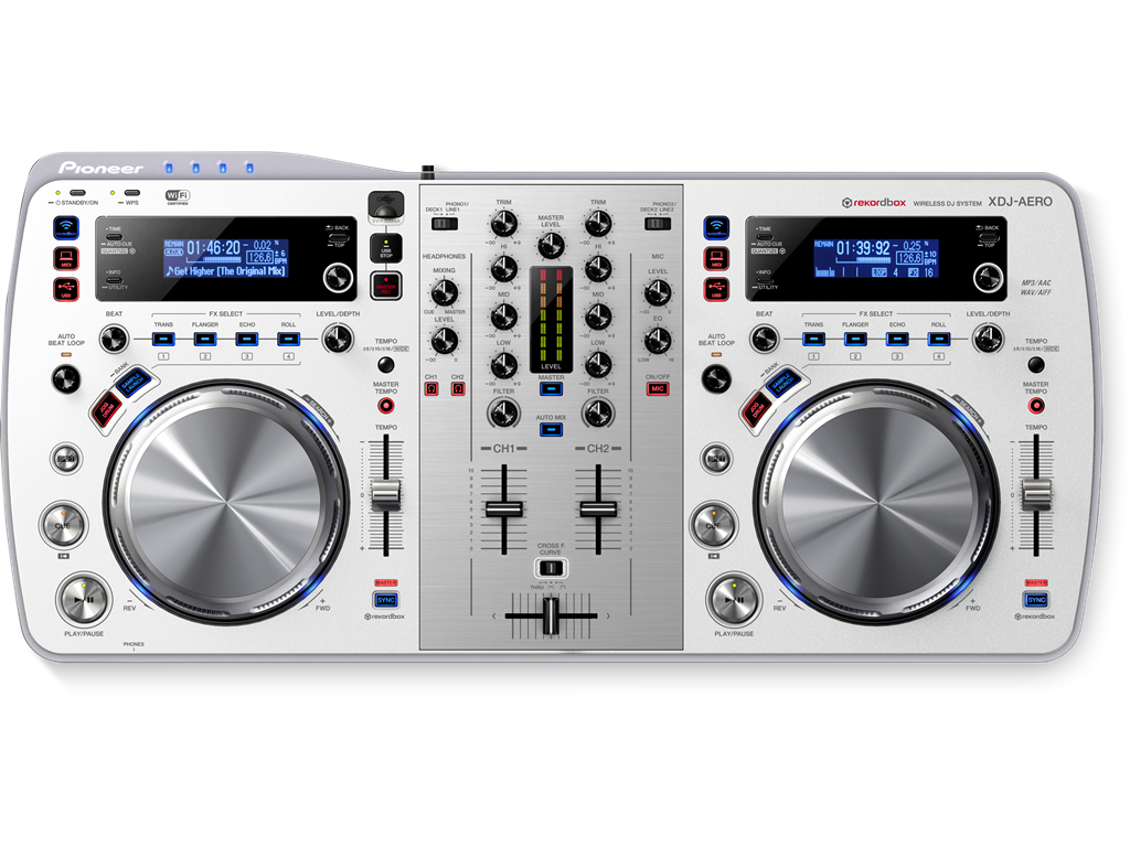 The XDJ-AERO is the original Wi-Fi enabled all-in-one system, allowing you – or your audience – to load music wirelessly from smartphones, tablets, laptops and PCs. A multipurpose unit, the XDJ-AERO works with rekordbox and the rekordbox app, functions as a standalone mixer when connected to players or turntables, and can be used as a MIDI/HID controller.