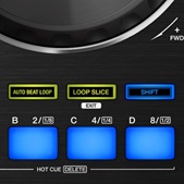 Use the tactile pads to instantly trigger Hot Cues and Auto Beat Loops. Or slice tracks on-the-fly with the Loop Slice function, which has single and continuous playback modes so you can choose a Loop Slice to suit your style.